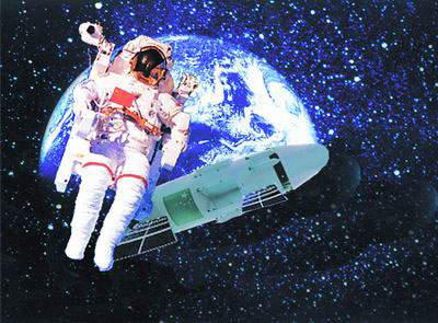 An illustration of spacewalk. China is to launch its third manned space mission, Shenzhou VII, later this month and one Chinese astronaut will conduct spacewalk during the mission.