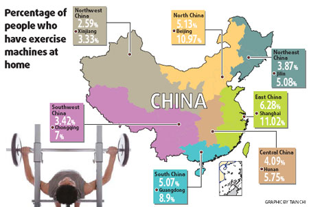 Physical exercise, however, is not a form of recreation for urban residents who just about manage to meet their needs, nor is it for farmers and migrant workers in cities. "We always think doing household chores and farming is working out. It's weird for us to think that a bit of additional exercise will help with our fitness," says Fang Dayue, a man in his 40s in a village in Anhui province. That is why fitness centers are a craze only in cities such as Beijing and Shanghai. Up to 70 percent of Beijing residents take part in sport, according to official data, whereas the national figure is only 33 percent. Besides, a majority of the middle-aged and old people exercise because they have been advised by physicians to do so to fight chronic illnesses. The initial results of the latest national physical fitness monitoring project, released by the General Administration of Sport of China (GASC) in 2006, show that the traditional "water towns" of Shanghai and Jiangsu province have more robust people than the country's tough northeast or the Inner Mongolia autonomous region. The study is carried out every five years to track the development of people's health and physical prowess in different regions. According to the GASC, the municipal and provincial governments on the east coast sponsor more advanced sports and fitness programs and thus the average resident in that region are fitter. The difference, however, reveals unbalanced distribution of sports resources in east and west, urban and rural areas, as well as major and small cities. "I want a place to loosen my muscles but there is simply no such place here," says Huang Hongqing, a 54-year-old resident of Anqing, a small city in Anhui. He used to play basketball with his son on the latter's school court. But after his son passed out of school, Huang lost his playmate, so he stopped playing altogether. "Ever since 2001, when China made a successful bid for the 2008 Olympic Games, people around me have become crazy about sports. But fields and courts are too few to meet the needs of everyone in a small city as ours," Huang Hongqing says. The sports facilities managed by subsidiaries of national or local sports authorities and those run by schools, universities and government and military institutions account for up to 88 percent of the total. ![]() The public has limited or even no access to institutions run by schools, universities, governments and the military. That has restricted them from making more money, says Wang Jing, a researcher in sports with Northwest University of Politics and Law. To deal with the problem, the country is working on a national fitness plan with funds both from the government and social sectors being used to build public fitness centers in urban and rural areas alike. According to a specific plan for rural areas, 3 billion yuan from central and local governments' budgets will be used to build fitness centers in 100,000 or one-sixth of China's villages by 2010. About 87,000 villages have already completed their projects. In economic terms, a sound national fitness program will help boost the sports and fitness industry and contribute to national development. Right now, the output of the sports industry accounts for only 0.56 percent of the country's GDP, whereas the ratio is 1 to 3 percent in some European countries. The figure is 4 percent in the US, which has the most advanced sports industry, according to the GASC. To ensure a healthy and balanced development of the sports market, Liu Guoyong, deputy director of the GASC, says his administration has submitted a long-term plan blueprinting the national fitness cause to the State Council. The proposal is likely to be adopted soon. Experts, including Liu, say the sports market is set to expand because the Beijing Olympics has created fitness and sports awareness among a huge number of people. GASC figures show investment in sports and other recreational equipment leaped 8.5 percent to $1.5 billion in the first seven months of this year, compared with the same period last year. That should be music to the industry captains' ears, and an impetus to more people to keep themselves fitter.