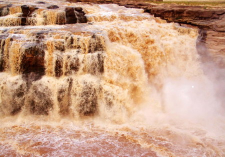 Water roars down the Hukou Waterfall of the Yellow River in Northwest China's Shaanxi Province on October 20, 2008. The waterfalls, located in the Shaan-Jin Grand Canyon, have resumed after consecutive rainfall around the upriver regions. [CFP]