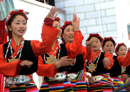 Tibetan women dance to celebrate the Tibetan New Year in Lhasa, capital of southwest China's Tibet Autonomous Region, February 20, 2009. [Xinhua]
