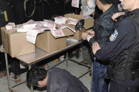 According to Huizhou police, of the 12 suspects, nine were busted in the place where the counterfeit notes were produced, one was caught in Guangzhou, and two were in Huilai county, Jieyang city, Guangdong on Tuesday. All the equipment used to make fake notes, including the printing machine and paper cutters were confiscated. Not a single fake note produced by this gang has been released into market due to the authorities’ swift actions, according to police. The case is now under investigation. In 2005, police destroyed a counterfeit-money-making factory hidden in a mountain in Huizhou and seized 62 million yuan worth of fake renminbi notes.