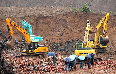 Saturday's landslide occurred at around 2 pm and unleashed about 100,000 cubic meters of rock and mud from the mountain, engulfing a brick factory and destroying part of a nearby ceramics factory in a suburb of Xi'an.