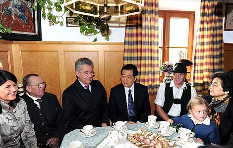 President Hu Jintao has visited the Austrian National Library in Vienna and a farm in Salzburg, hometown of 18th-century composer Wolfgang Amadeus Mozart. Hu's trip, the first by a Chinese president in 12 years, conveys the message of cultural exchange.