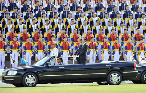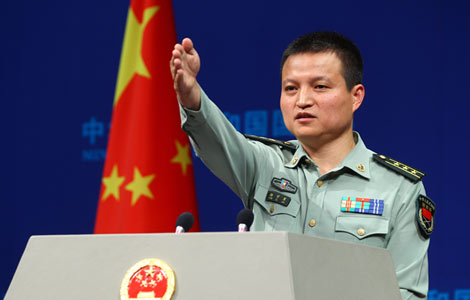 Liu Yuanjie (center), the chief of a radar observation post on an isolated island in Northeast China's Liaoning province, with two other soldiers. Provided to China Daily |