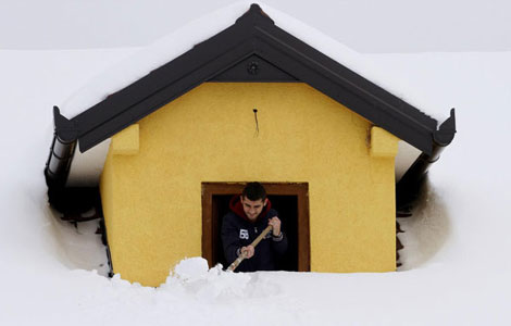 A woman stands on a pedestrian bridge overlooking the Fourth Ring Road in northeast Beijing during rush hour in September. [Photo by Wang Jing / China Daily] |