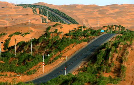 The 562-kilometer road, completed in 1995, shortens the route between Urumqi and Hotan by 500 km. But it had been plagued by problems caused by the sand.