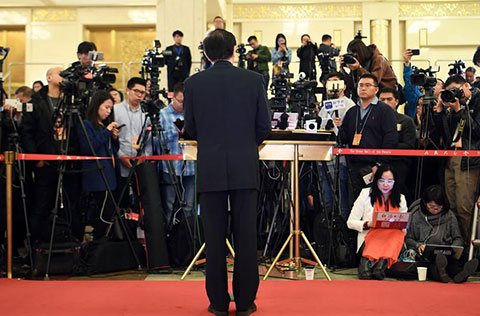 People pull ropes tied to a pole with prayer flags to keep it erect during an annual event in Gyangze county of Xigaze Prefecture, Southwest China's Tibet autonomous region, on March 12, 2017. About 10,000 residents attended the event to pray for a bumper harvest and a happy life.[Photo/Xinhua] |