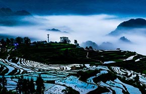 Photo taken on March 15, 2017 shows a wind turbine farm on the hills of Changxing county, East China's Zhejiang province. A total of 11 wind turbines of a power plant officially began to join the power grid on Wednesday.[Photo/Xinhua]