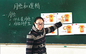 Wu Ling, a sex education teacher at Xingzhi Primary School in Beijing's Daxing district, teaches her students about women's bodies and menstruation.Photos By Zou Hong / China Daily |