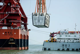 GUANGZHOU -- Chinese engineers installed a 6,000-ton key structure of the world's longest cross-sea bridge linking Hong Kong, Zhuhai and Macao.