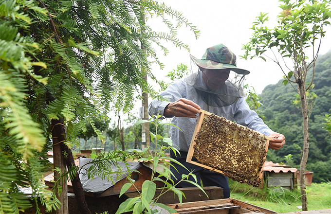 A resident of Wuping county, Fujian province, checks the beehives he tends on land allocated by reform of the forest ownership system.Photos By Lin Shanchuan / Xinhua |