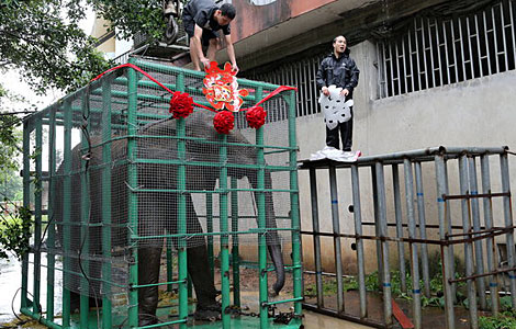 Two 18-year-old female elephants, Feifei and Zhouzhou from the Nanning Zoo, both weighing 2,000 kilograms, will be moved to the Beijing Zoo to mate with Zhuangzhuang.