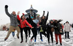 Foreign tourists pose for photo in front of the Hall of Prayer for good harvests in the Temple of Heaven in Beijing, capital of China, Feb 5, 2013.