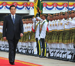 President Hu Jintao inspects an honour guard during the official welcoming ceremony at the parliament square in Kuala Lumpur November 10, 2009.