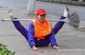 Street cleaner Zhang Xiufang earned overnight fame from a web poster where she displayed her unique broom skills.