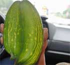 A conjoined cucumber is found at a commercial vegetable garden in Zhongzhou village, East China's Jiangxi province, June 12, 2011. The cucumber weighs about 1.5 kilograms.