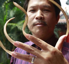 A man shows the "fruit" of 15 years of hard work – 20-centimeter-long fingernails – in Haikou city, South China's Hainan province, March 13, 2011.