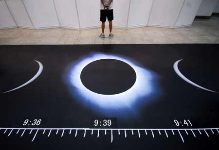 Photo taken on July 11, 2009 shows the sketch maps illustrating the whole process of the full solar eclipse during a popular science exhibition on the introduction to the forthcoming 2009 Full Solar Eclipse at the Shanghai Science & Technology Museum in Shanghai, east China. The upcoming full solar eclipse, predicted to betide on July 22 and believed to be the longest of its kind in 500 years, will be visible in most parts of the Shanghai Municipality. [Xinhua]