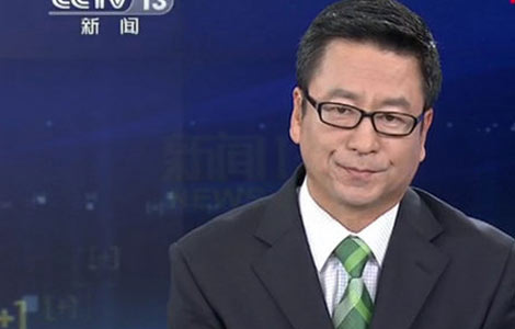 Bai Yansong, a famous anchor of China Central Television, voiced his support to students wearing green scarves at a primary school in Xi’an by wearing a green tie on a TV program, Oct 19, 2011.