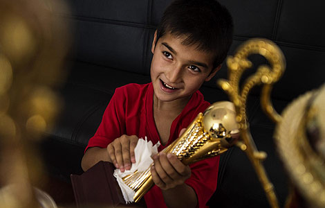 Student soccer players from Urumqi Fifth Primary School in Urumqi defy the formidable heat to train in Xinjiang Uygur autonomous region train on Aug 13. The team defended its title at the National Teenage Campus Soccer Championship 2013 in Guangzhou, South China's Guangdong province between July 15-18.