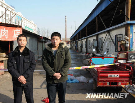 1月7日,河北三河市燕郊行宮活禽市場(chǎng)活禽交易區(qū)域已全部關(guān)閉,市場(chǎng)保安人員在現(xiàn)場(chǎng)警戒線前守護(hù)。當(dāng)日,河北省三河市關(guān)閉燕郊地區(qū)所有活禽交易市場(chǎng),并對(duì)外部環(huán)境進(jìn)行采樣和徹底消毒。1月6日,北京市發(fā)生一例人感染高致病性禽流感死亡病例。據(jù)悉,死者生前曾接觸過從河北省三河市燕郊行宮市場(chǎng)購(gòu)買的活殺鴨肉。目前,三河市尚未發(fā)現(xiàn)禽流感疫情,疫情搜索和各項(xiàng)防控工作正在進(jìn)行中。(新華社記者王民 攝)