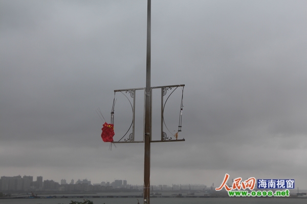 30日上午10時,記者在??谑惺兰o(jì)大橋上,看到大橋兩側(cè)路燈上為慶祝國慶節(jié)而布置的燈籠被風(fēng)雨吹得七零八落,無法再支撐到10月1日。