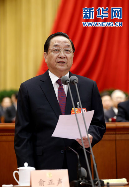 2013年3月3日,中國(guó)人民政治協(xié)商會(huì)議第十二屆全國(guó)委員會(huì)第一次會(huì)議在北京人民大會(huì)堂開(kāi)幕。俞正聲主持開(kāi)幕會(huì)。新華社記者鞠鵬攝
