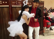 有2008年(13歲)《大慶紫藤杯》青少年器樂(lè)大賽,王碩演奏二胡的照片,那次他得了民樂(lè)組特等獎(jiǎng)。