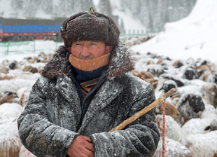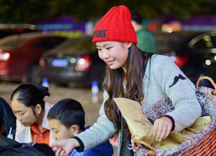2006年12月27日,剛出生7個(gè)月大“寶寶”給主人拉著50斤重的大米沿著市區(qū)世昌大道上的人行橫道穿過(guò)馬路往家走。