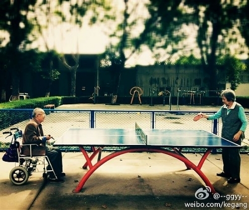 簡單的乒乓球案,華發(fā)斑白的老夫妻,坐在輪椅上的爺爺神情專注。就是這樣一張照片,短短幾天在網(wǎng)上被傳瘋了!“感動(dòng)”,“羨慕”,“發(fā)現(xiàn)浪漫,原來是彼此的堅(jiān)守和陪伴”。感慨的網(wǎng)友們干脆給把它封為“陜師大最浪漫的照片”。