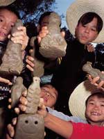 | | Youngsters show off their clay works of art | |
