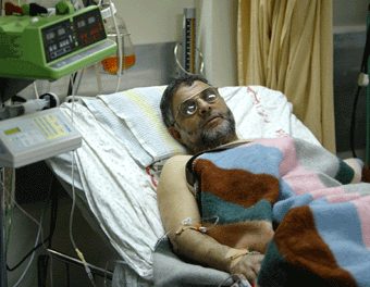 Wounded Hamas leader Abdel-Aziz al-Rantissi lies in a