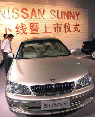the assembly line at Dongfeng's Guangzhou base Monday. The brainchild of the State-run Dongfeng Motor Corp and Japan's Nissan Motor Co, Dongfeng Motor Co is the biggest Sino-foreign automobile joint venture in China so far. The 50-50 operation has registered capital of 16.7 billion yuan (US$2 billion). "The launch of the Sunny model is a starting point for the new Dongfeng to crack the lucrative but competitive car market in China," said Miao Wei, board chairman of the JV. Nissan's expertise, reputation and management have come together with Dongfeng's skilled workforce and understanding of the domestic market to make the Nissan Sunny and future models competitive in the domestic market, he said. "The joint venture will make another five new passenger models at the Guangzhou base to help realize annual sales of 220,000 cars by 2006," added Katsumi Nakamura, president of the joint venture. The joint venture's Guangzhou base is set to become Dongfeng's production as well as research and development (R&D) base for Nissan-branded passenger cars. The base is capable of producing 150,000 passenger vehicles a year at present and, in a decade, will have an annual production capacity of 900,000 passenger vehicles. Lin Shusen, Guangzhou Party secretary, said Dongfeng's Guangzhou base for passenger vehicles will strengthen the city's position as one of China's key automobile bases. Besides Nissan, other Japanese auto makers including Honda and Isuzu have