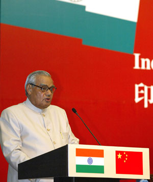 | | Visiting Indian Prime Minister Atal Behari Vajpayee delivers a speech at a seminar entitled "India & China, Challenges & Opportunities in the IT Sector" in Shanghai June 26, 2003. India's relationship with China has been transformed by a determination to cooperate and deal with problems, Vajpayee said. [Reuters] |