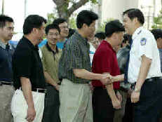 "The two men later found two people who were staying in the two-storied building, bound them with ropes and stabbed them," Kong said. Huang and Cheng made off with a platinum watch, cash, three mobilephones, a lap-top computer and a jeep. The triple slaying attracted the attention of the central government. A nationwide wanted circular was immediately issued and local police began an intensive manhunt for the killers. Police said they obtained the names of two suspects and were told they came from East China's Jiangsu Province. More than 50 police from Shanghai were sent to Jiangsu where they worked in co-operation with local police. After the arrest of the two men in Suining, in north of Jiangsu Province, police recovered the jeep, the watch, a lap-top computer and a mobilephone. "Song's elder brother and Lin's uncle have arrived in Shanghai," said Zhao Yajun, deputy director of Shanghai's Taiwan Affairs Office. "We briefed them on the case and showed them the bodies." Kong stressed that the burglars had not known the victims - it was not a case of Taiwan businessmen being targetted. "It was the first burglary case in the area this year," he said. "Shanghai