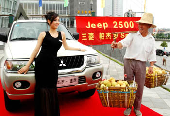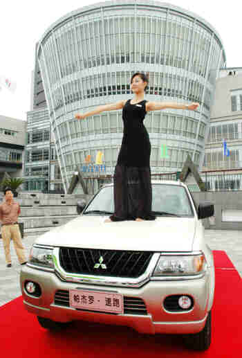 talks with a car model on June 27, 2003 , at the Ningbo Press and Culture