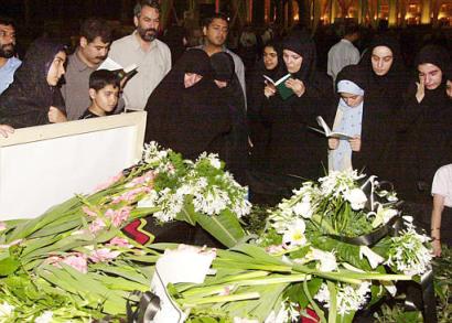 Some 60 friends and government officials, led by the head of the State Welfare Organization Mohammad Reza Rahchamani, were at Tehran airport Thursday in a reception usually reserved for slain soldiers and prominent figures. Yellow-jacketed airport staff carried the coffins, draped in brown cloth, off the plane. Each coffin bore a bouquet of white flowers tied with black ribbon. "They are separated now and rest in peace," said close friend Noushin Mehran, as she watched with tears in her eyes. "They died while struggling for an independent separate life." After the military band finished a piece, a squad of soldiers saluted the coffins and they were placed in an ambulance en route to Tehran's Grand Mosque, where hundreds of mourners paid their respects. The bodies will be flown to Shiraz in southern Iran on Friday, and are to be buried later that day in Lohrasb, the southwestern village in which they were born. Their parents, Dadollah Bijani and Maryam Safari, were said to be in Firouzabad, a town close to Lohrasb, on Thursday. President Mohammad Khatami paid tribute to the twins' resolve and patience, the government-run daily Iran reported Thursday. "We should appreciate the patience of these two innocent birds who tolerated their difficult life and enthusiastically welcomed a happier future," Khatami was quoted as saying. The sisters, who had spent years looking for surgeons who would try to separate them, left Iran seven months ago to prepare for the operation in Singapore. They made many friends in Singapore, where more than 400 people said prayers for them Wednesday in a mosque. Muslim nurses at Raffles Hospital who had become friends of the twins during months of preoperative tests helped women from Singapore's Iranian community purify the bodies for the 4,000-mile flight back to Iran. The women wound wide strips of cloth around their bodies, from their shoulders to their feet, in accordance with Shiite Muslim tradition. The operation was the first time surgeons tried to separate adults joined at the head. The surgery has been performed successfully on infants, whose brains can more easily recover. The twins, who were fully aware of the risks of the operation, won wide admiration in Iran and elsewhere for their courage. Iranian television and newspapers gave extensive coverage to their lives and the operation - which lasted more than 50 hours and was carried out by a team of 28 doctors and about 100 nurses and technicians. "If God wants us to live the rest of our lives as two separate, independent individuals, we will," Ladan Bijani had said