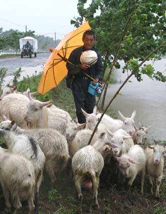 flooded areas in Xuyi in East China's Jiangsu Province, July 10, 2003.