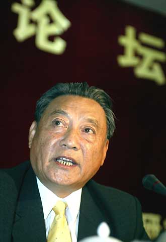 Tang Shubei, director of the Beijing-based Cross-Straits Relations Research Centre, speaks at the opening ceremony of a 2-day seminar on cross-Straits relations in Lijiang, Southwest China's Yunnan Province, July 17, 2003. [newsphoto.com.cn]