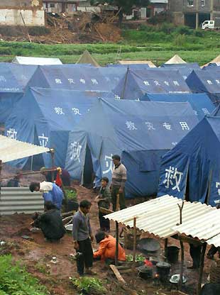 residents in the quake-hit area, July 23, 2003. [newshoto.com.cn]