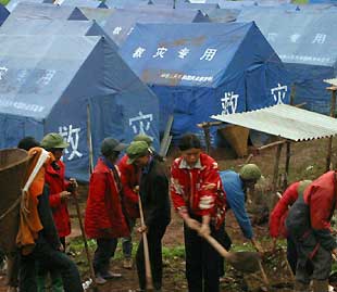 in quake-hit Dayao, Southwest China's Yunnan Province, July 23, 2003. The