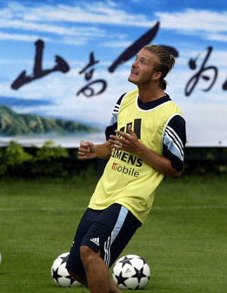 Becks'first training session in Kunming ( 2003-07-26 08:11) (newsphoto.com.cn)