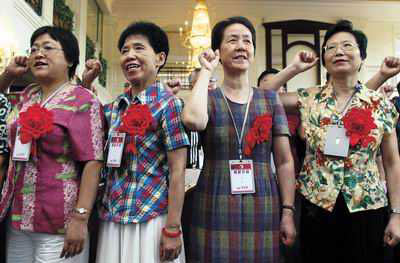 Retired doctor volunteers take an oath before leaving for Xinjiang yesterday to aid in the development of the western region.