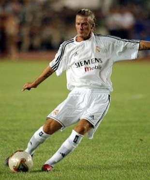 Real Madrid's David Beckham kicks a free kick