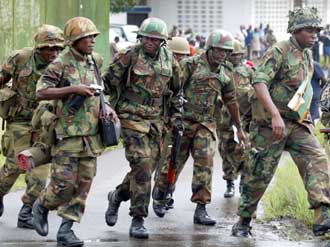 peacekeeping troops arrive at the International airport in Monrovia August