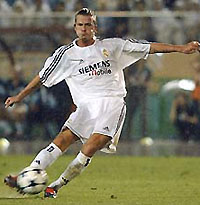 Beckham's shot got through the wall and over the outstretched hands of goalkeeper Yoichi Doi in front of 48,000 spectators at a rain-soaked National Stadium. Solari made it 2-0 just before the break, picking up a rebound off a Portillo drive that Doi was unable to handle. Ronaldo, who came on as a substitute in the second half, made it 3-0 in the 43rd minute, stepping around a defender and scoring on a shot into the far corner. Beckham made his much-anticipated debut in Saturday's 4-0 win over a Chinese select team in Beijing. He played 73 minutes but did not score. Real Madrid signed Beckham for $40 million last month on a transfer from Manchester United. Beckham played a key role in Real Madrid's attacking in the first half, firing a free kick into the hands of Doi in the 17th minute and setting up Portillo from the right wing. ¤K¤K |