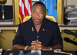 "This is over. We should lay down the guns and smoke the peace pipe," said Blah, whom the rebels have said they will reject as just another of Taylor's old guard. The arrival of West African peacekeepers last week fulfilled Taylor's condition for bowing out. US warships wait offshore with 2,300 Marines. But Washington has not decided if it will commit ground troops. REGIONAL WARLORD Taylor has not said when he will leave, but South Africa's ambassador said he would go at the same time as leaders, including President Thabo Mbeki, after Monday's handover. Taylor has said he would accept a Nigerian asylum offer and two flights carrying family members and property -- including three cars -- landed on Sunday in the steamy southeast Nigerian town of Calabar, officials there told Reuters. West Africa's leaders are keen to see the back of Taylor, accused of helping plot conflicts that have left a quarter of a million dead in Liberia, Sierra Leone, Guinea and Ivory Coast. Scores of fighters emerged from both sides of the frontline in Monrovia on Sunday, hugging, joking and swapping cigarettes and clothes on the bridges where battle raged a week ago. "Even if our commanders tell us to fight, I personally will not fight. There is no need for war," said Taylor's young General "T-Boy" as he chatted with LURD commanders. But while the guns are silent in the capital, there is little sign of a let-up in the dire humanitarian crisis here. The United Nations estimates that at least 450,000 people are displaced in Monrovia -- many of them hungry and sick. Markets have only a few green leaves for sauce on sale. Prices for the staple rice have risen by five times or more. "We thank God the bullets have stopped," said Moifee Sombai, standing on a street where stray gunfire killed many. "But now it is the silent weapons. We are dying silently." FOOD BLOCKED AT PORT The situation might ease if the rebels reopened the port, where they have already pillaged supplies of food aid. But they have been reluctant to relinquish their hold on ground captured in recent fighting while they say they are still unsure that the wily Taylor will fulfil his pledge to step down and leave the country. Taylor won 1997 elections after emerging as the strongest warlord during seven years of civil war. But he never achieved the clean image he sought as evidence mounted of Liberia's role in other conflicts in the region. Taylor blamed the international community, and especially the United States, for maintaining an arms embargo that hamstrung efforts to fight his own rebels. He said LURD had been given U.S. financing via Guinea. "This is an American war. LURD is a surrogate force," he said on Sunday. "They can call off their dogs now." West African officials say that Blah's stay will be short, possibly just days, before a new interim president is chosen at peace talks in Ghana among Taylor's officials, rebels and squabbling politicians. "We'll not recognize Blah's presidency, but we know there's very little we can do about it in the interim," LURD's military adviser Joe Wylie told Reuters in Ghana.