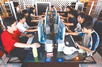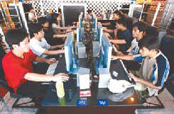 Computer users at Digital Legend online shop in Shanghai. China's service sector has undergone tremendous development, which fails to be reflected in GDP under the old calculation method. [Reuters]