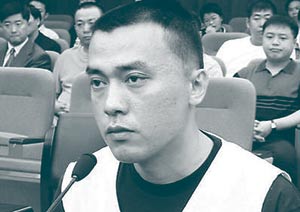 Li Jiating (left), former governor of Yunnan Province, was sentenced to death with two-year probation for taking bribes, while hearings on charges against his 30-year-old son, Li Bo (above), also for taking huge amounts of bribes, is still underway in Kunming, capital city of Yunnan. [newsphoto.com.cn]