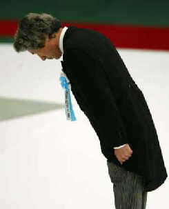 Japanese Prime Minister Junichiro Koizumi visits the Yasukuni Shrine on August 15, 2003. [Reuters]